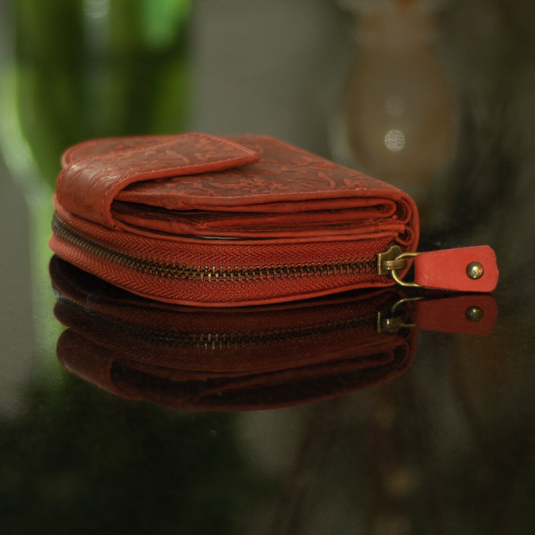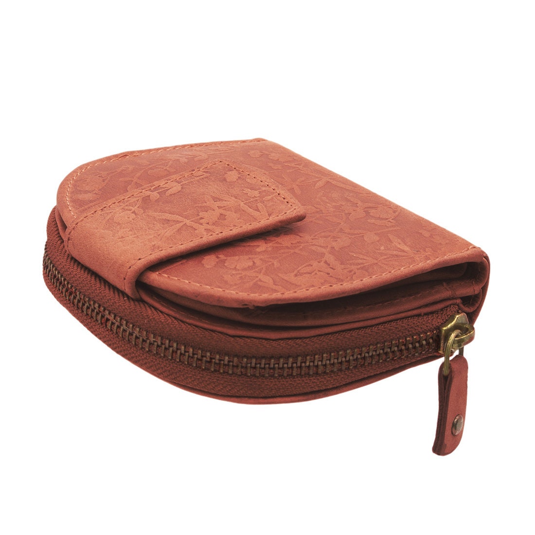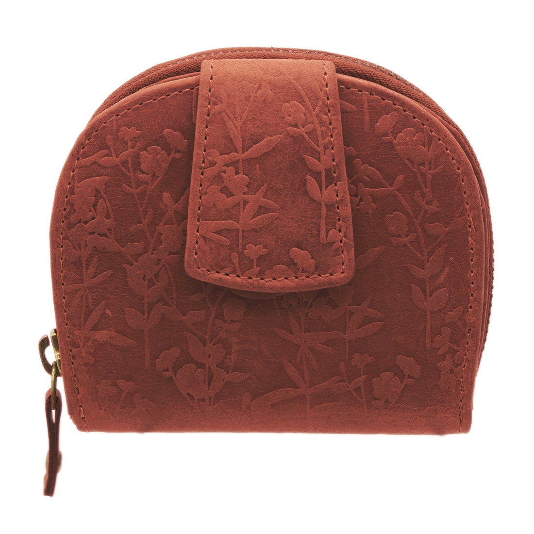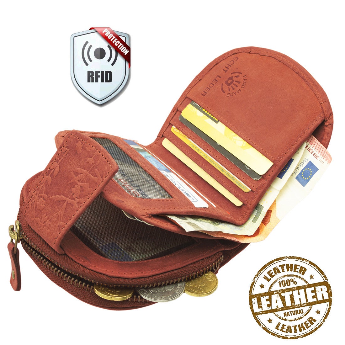 π» LEATHER QUALITY: 100% genuine leather, RFID protection, protective exterior in old style, embossed with flowers, durable and water-repellent, in terracotta red.