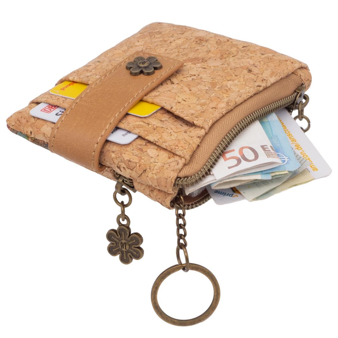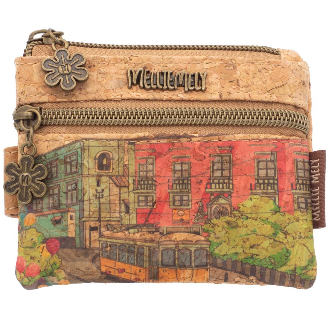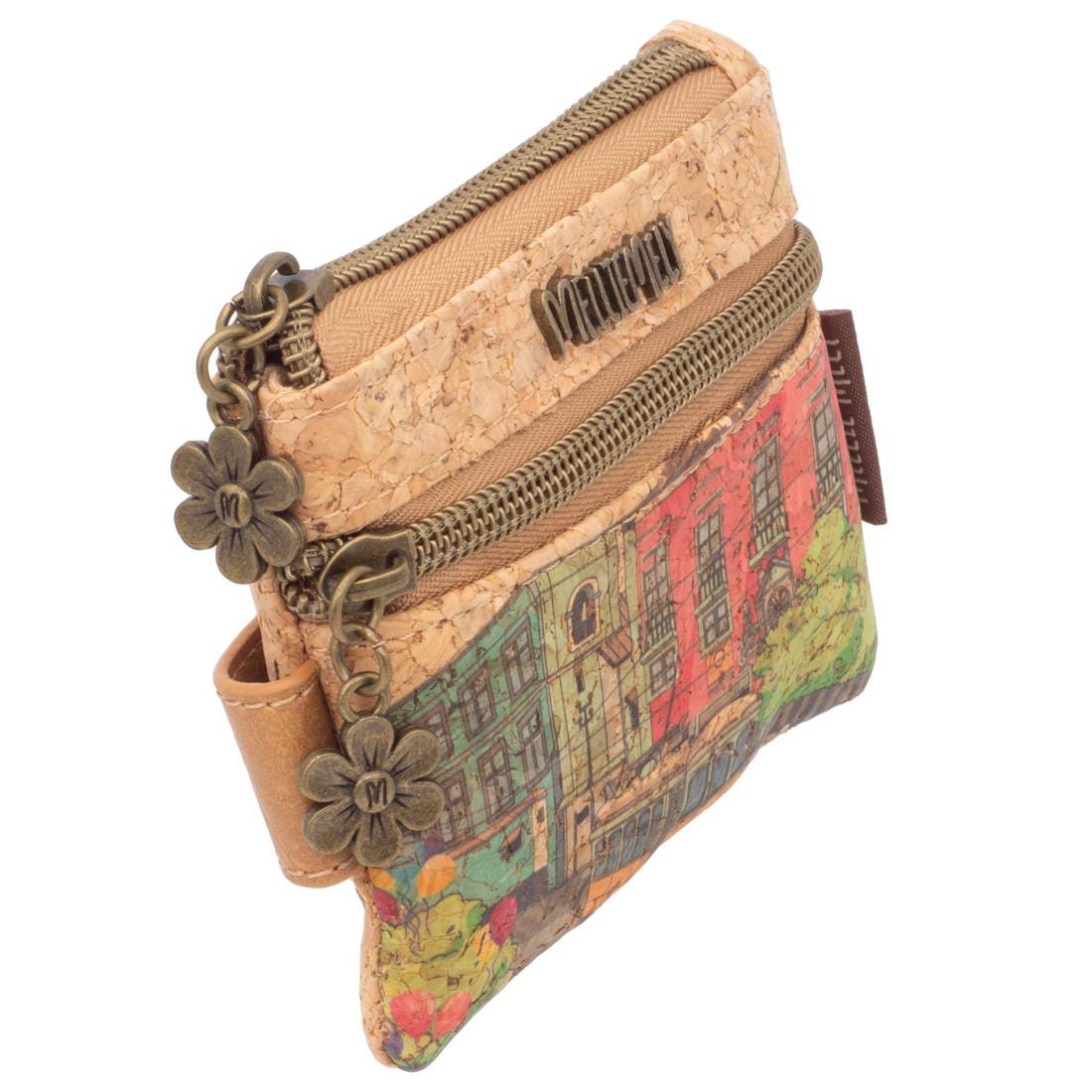 This charming mini wallet made from sustainable cork will add color to your everyday life. The artistic print features a vibrant city scene with historic buildings and a nostalgic tram—perfect for anyone who loves a vintage flair. Two zippered compartments keep things organized, while playful metal flower charms add a lovely finishing touch. The ideal combination of function, design, and environmental awareness.