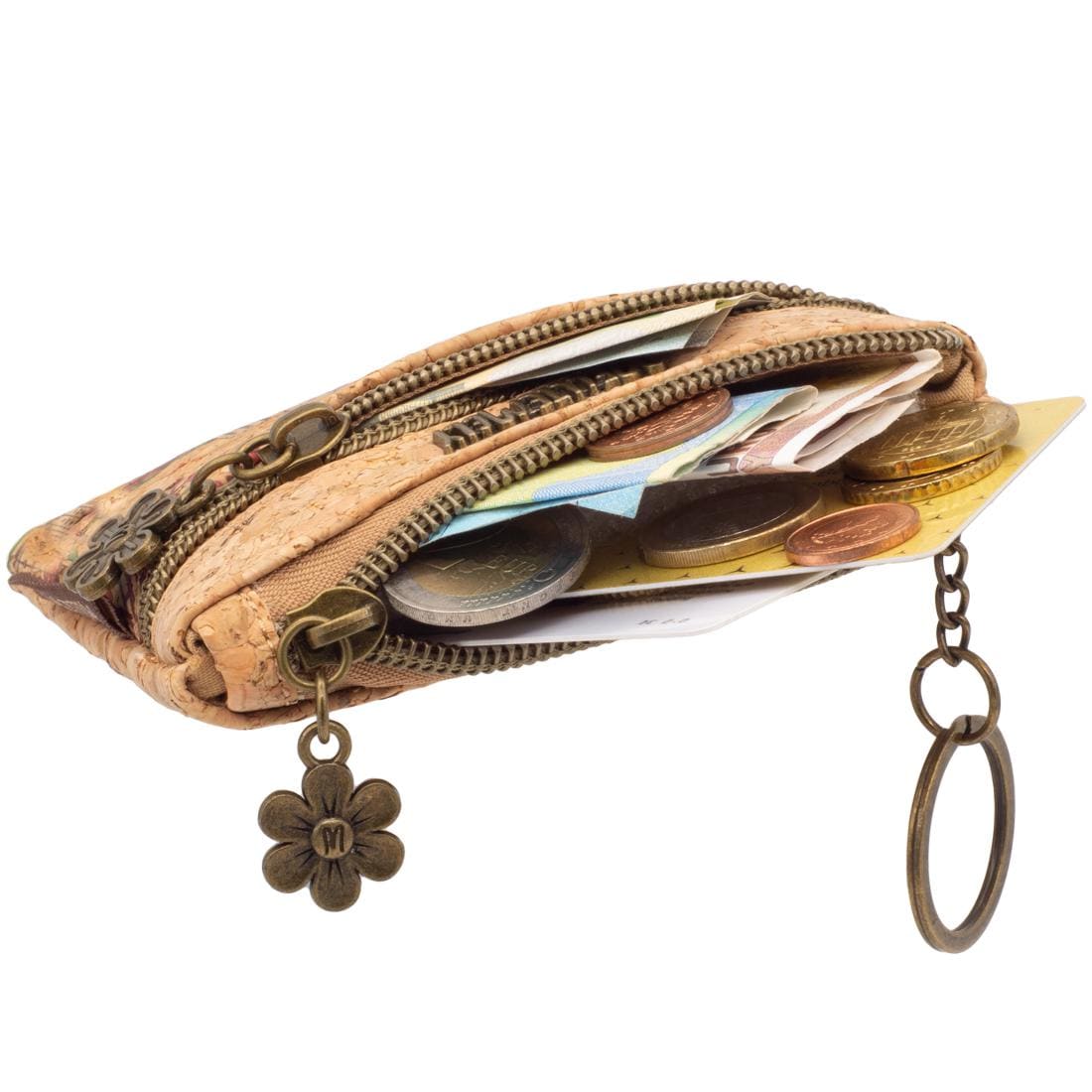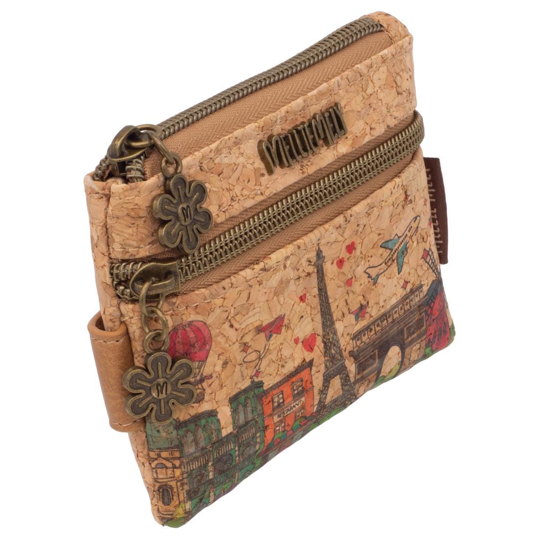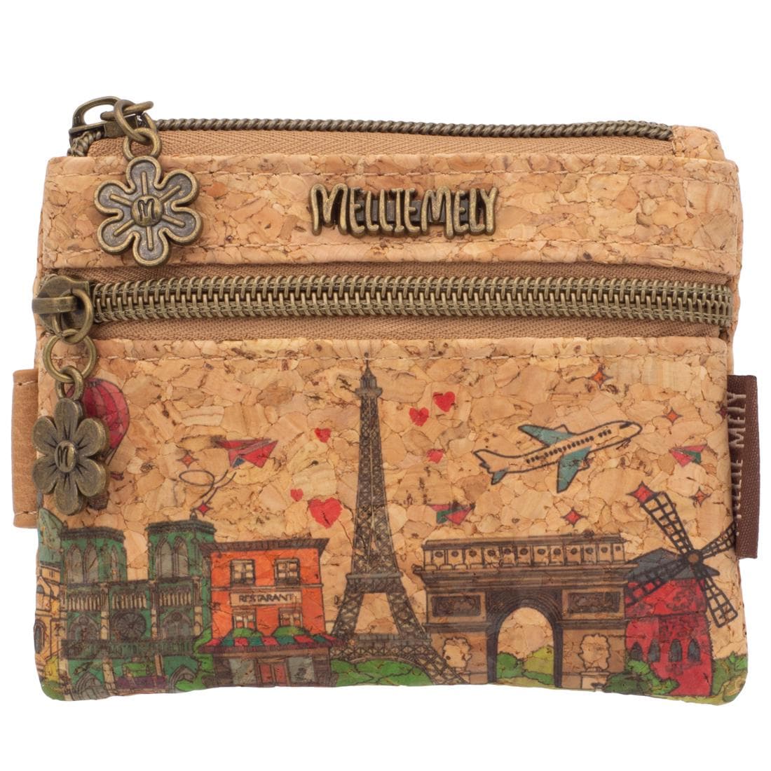 This stylish mini wallet made of vegan natural cork will transport you to the romantic world of Paris. Featuring charming illustrations of the Eiffel Tower, Arc de Triomphe, small bistros, and windmills, it brings French flair directly into your everyday life. Two zippered compartments keep things organized, while cute metal flower charms add a touch of charm. Whether as a wallet, small cosmetic bag, or travel souvenir, this accessory combines functionality with wanderlust.