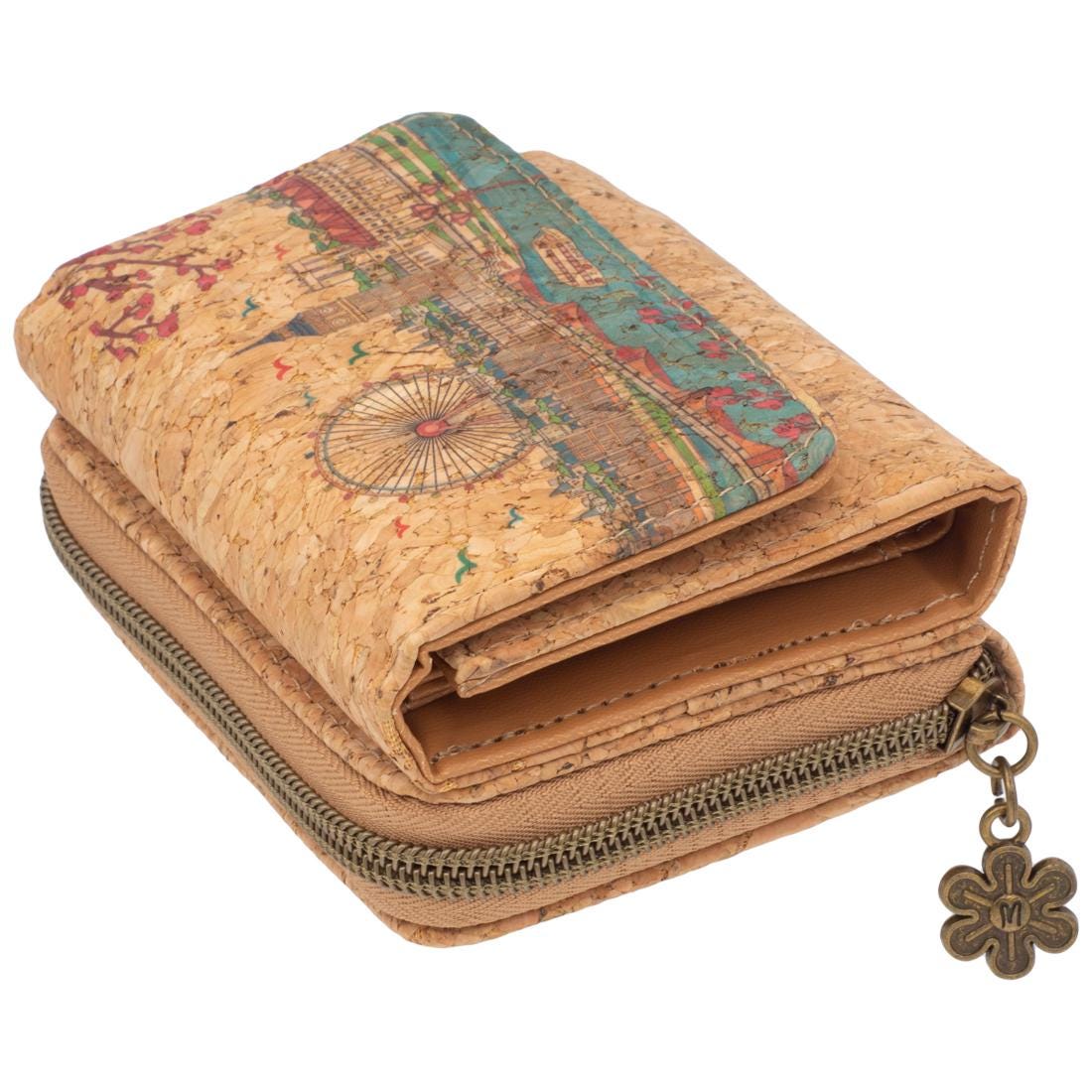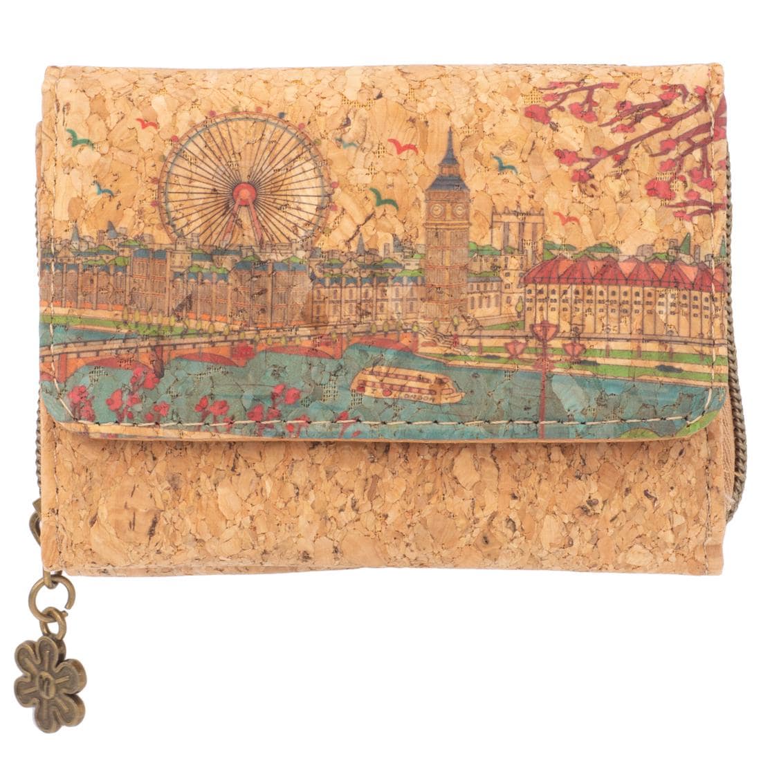 This vegan cork wallet, featuring a detailed London illustration, brings urban charm to your everyday life. Crafted from natural, sustainable cork and printed with iconic landmarks like the London Eye and the River Thames, it's the perfect companion for anyone who wants to combine design, function, and environmental awareness. Thanks to the cleverly designed compartments and secure all-around zipper, your contents are well protected—stylishly packaged in a charming format.