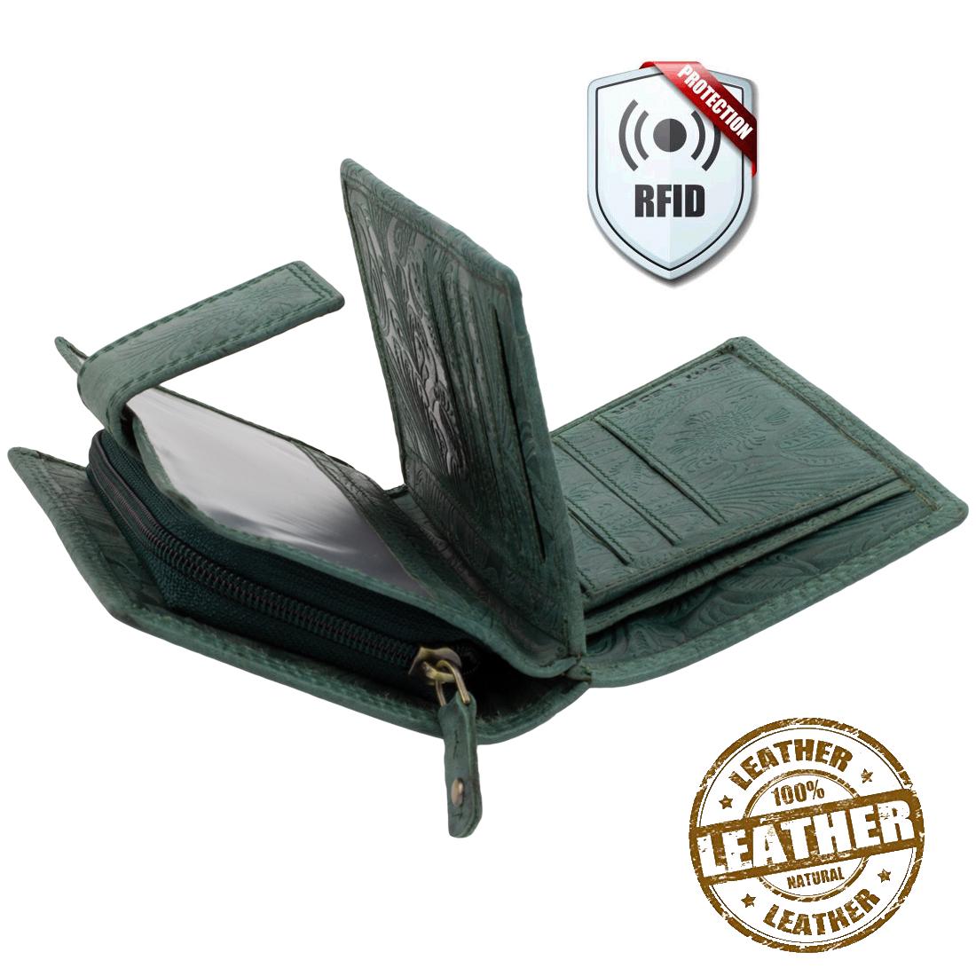 π» This elegant women's wallet made of 100% genuine leather combines timeless design with practical functionality. The embossed floral pattern gives it a unique vintage look, while the clever interior layout offers space for cards, coins, and bills. RFID protection keeps your data safe from unauthorized access. A high-quality companion for every day β stylish, secure, and durable.
