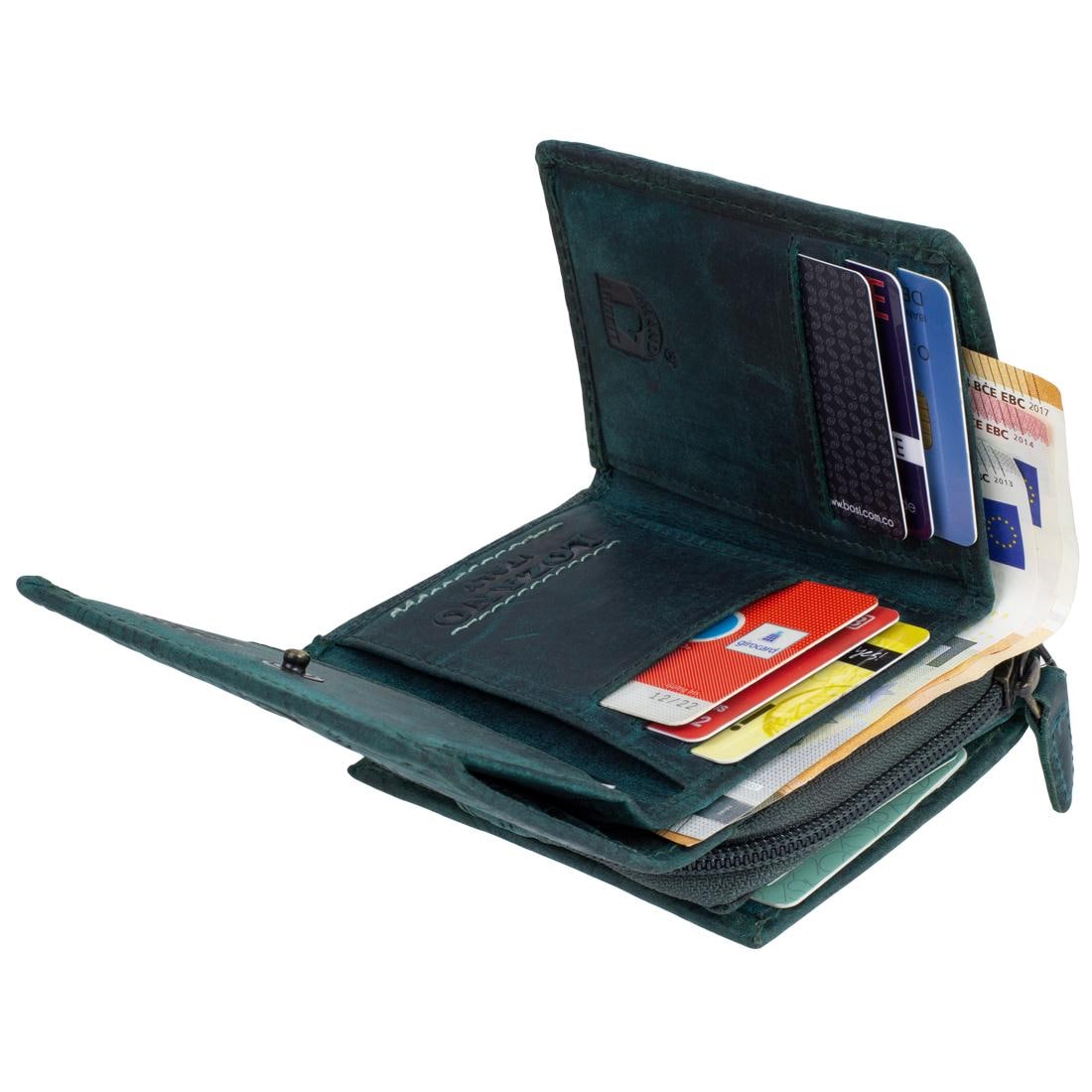 With integrated RFID protection, your cards are reliably protected against data theft. Inside, the wallet features 14 card slots, 2 coin compartments, 1 bill compartment, and 1 photo slot. Classically robust, handy (11 × 9 × 4 cm), and elegant – a statement piece for traditionalists with style.