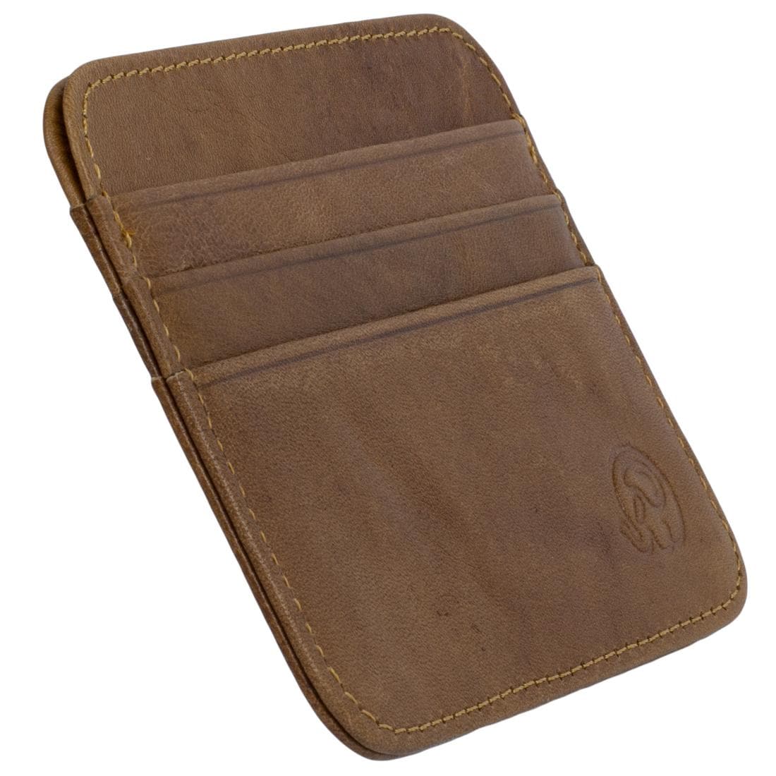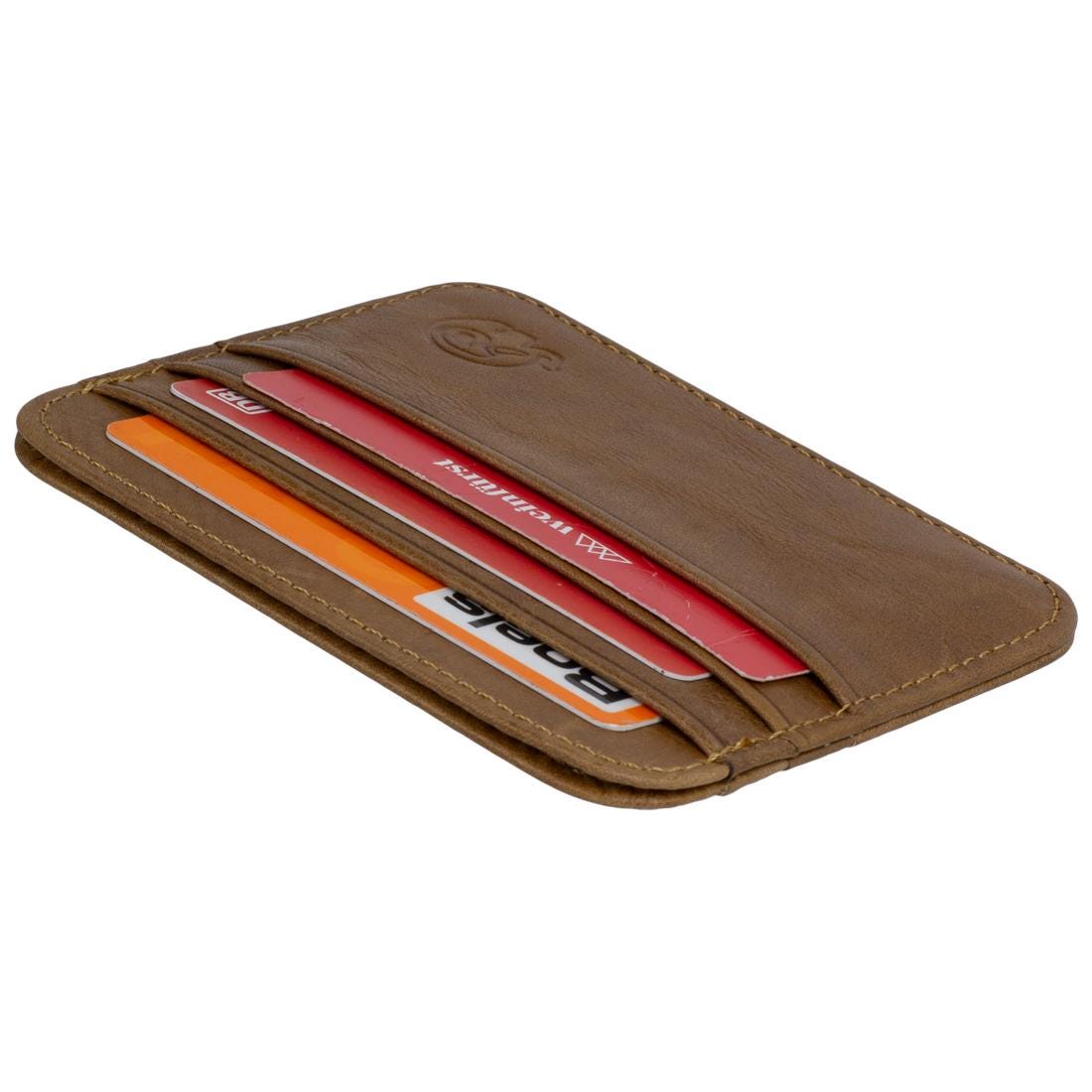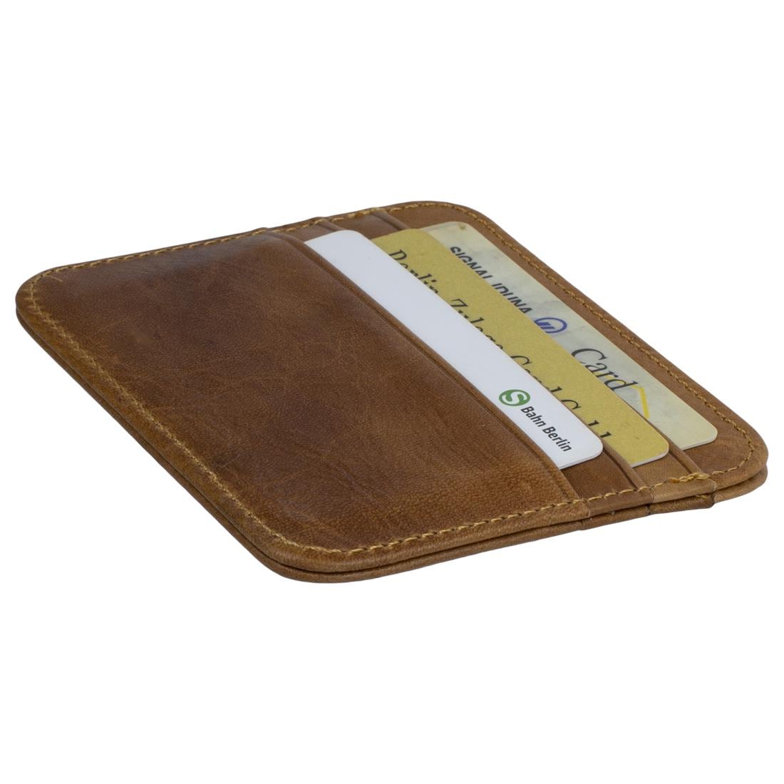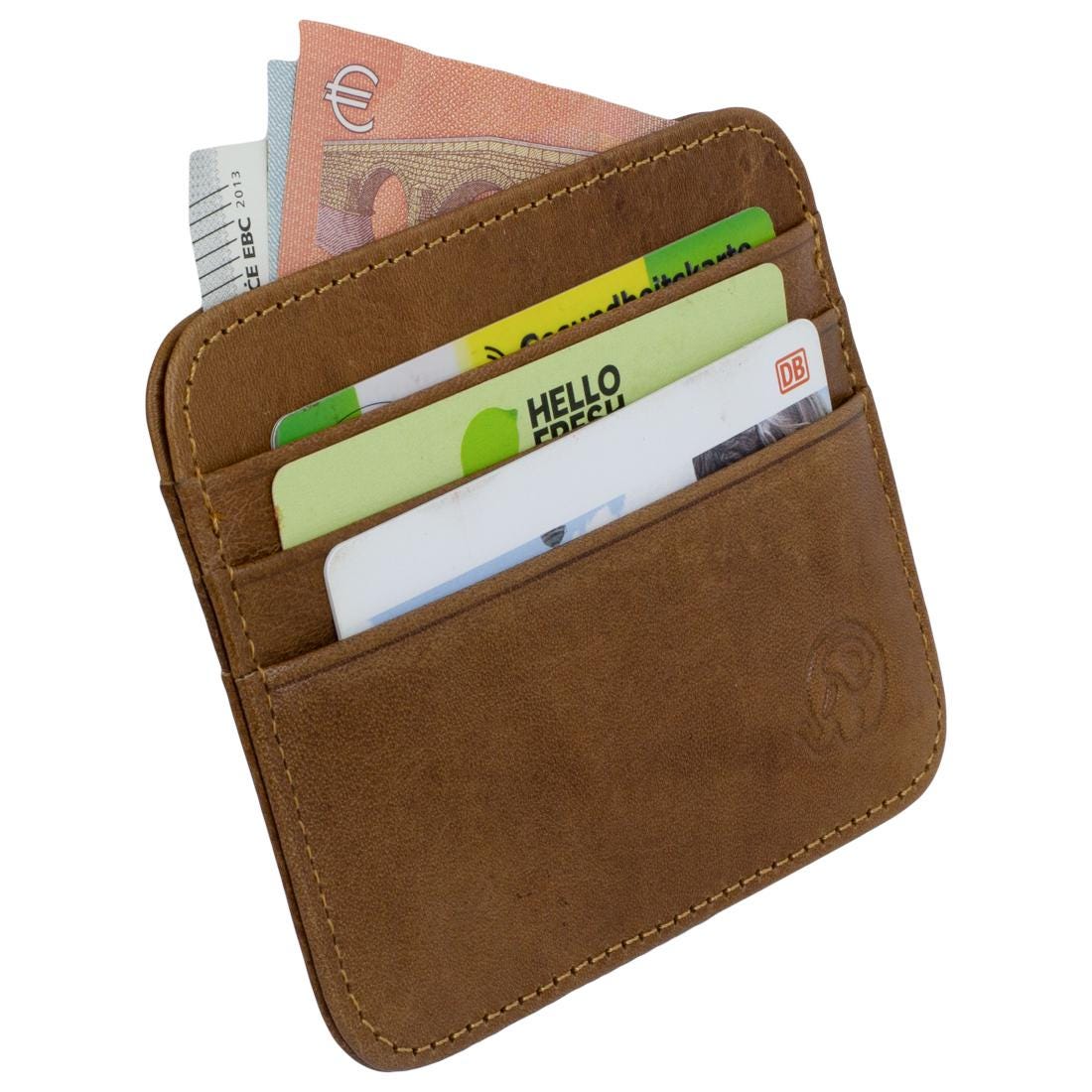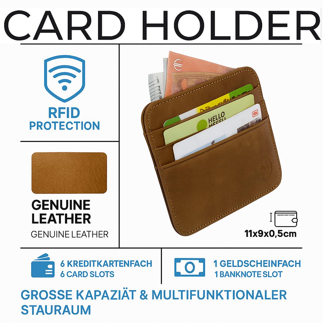 RFID card case, genuine leather, brown – 6 card slots, 1 bill compartment, slim card holder 11×9×0.5 cm