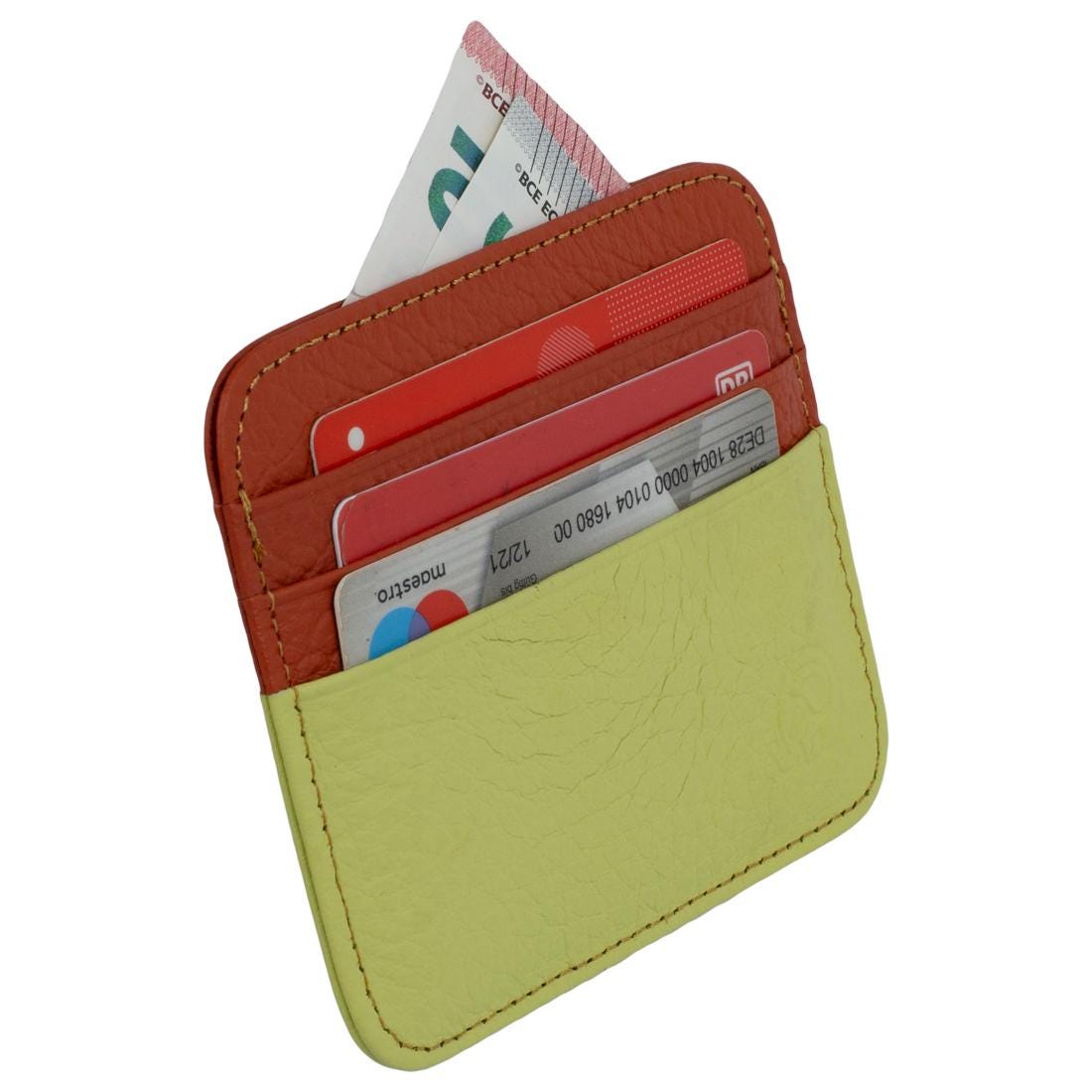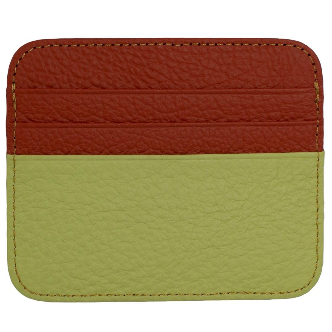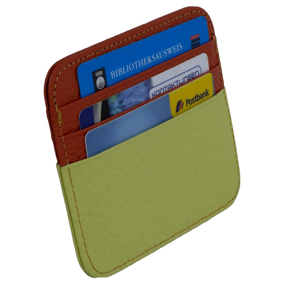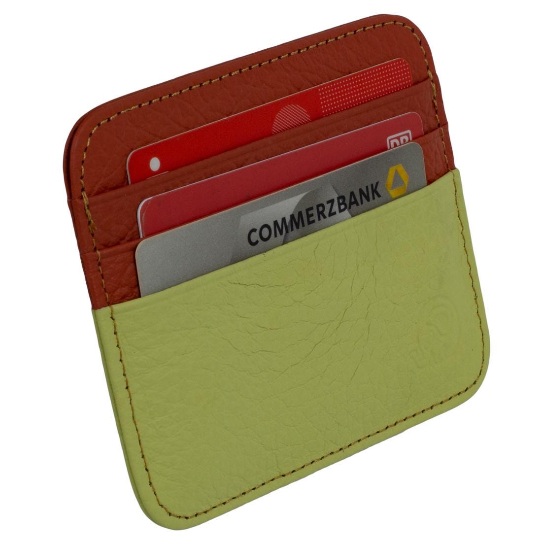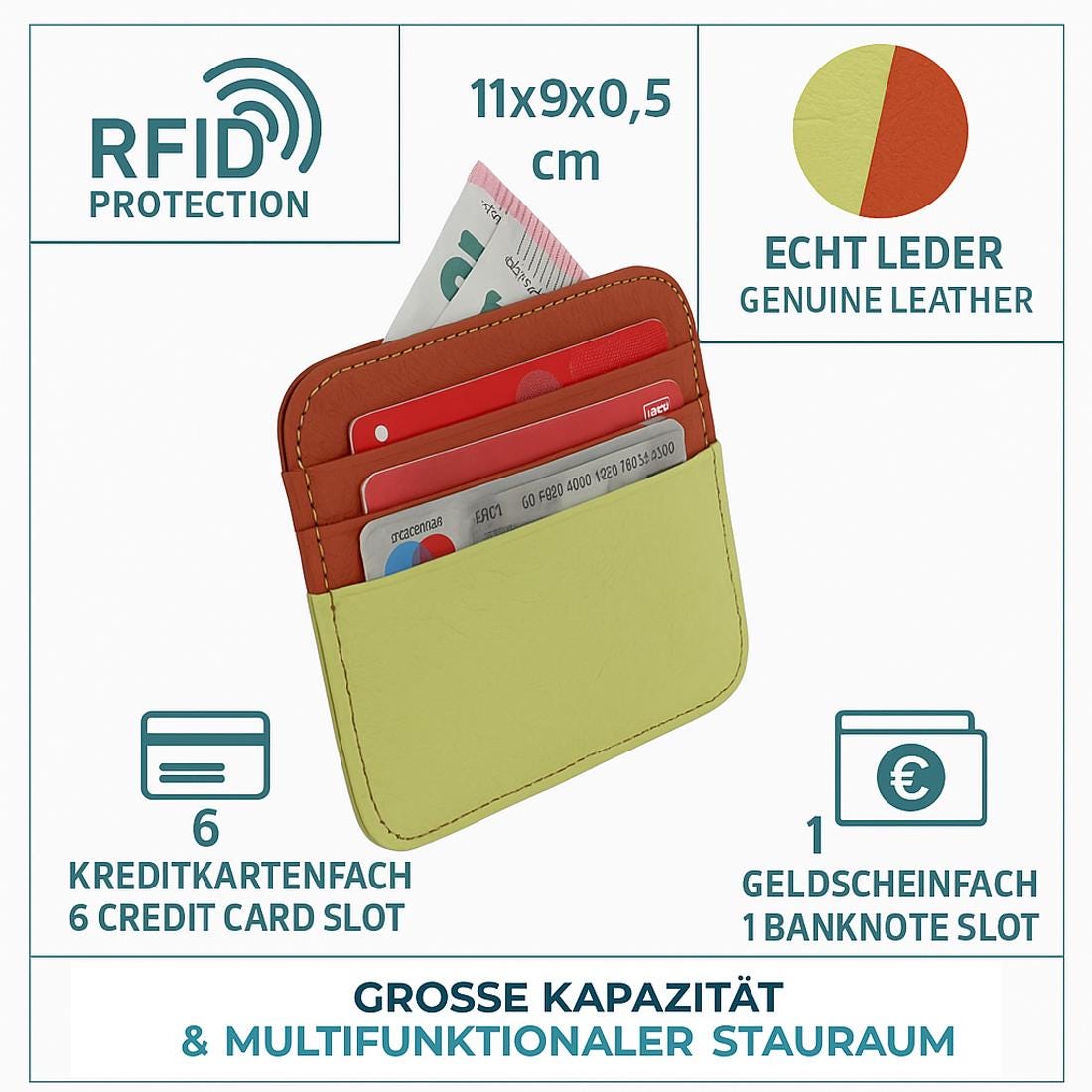 RFID card case genuine leather red-green, 6 card slots, 1 bill compartment, slim card holder 11×9×0.5 cm