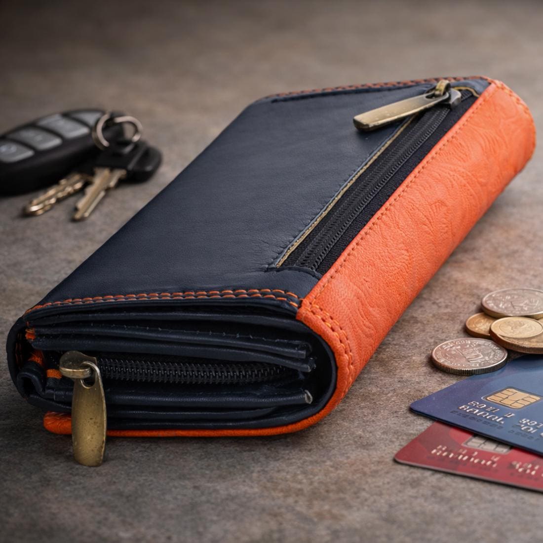 π» SECURELY STORED: 2 zippered compartments β a practical coin pocket with zip and another concealed compartment for bills/receipts; reliably keeps change and important items together.