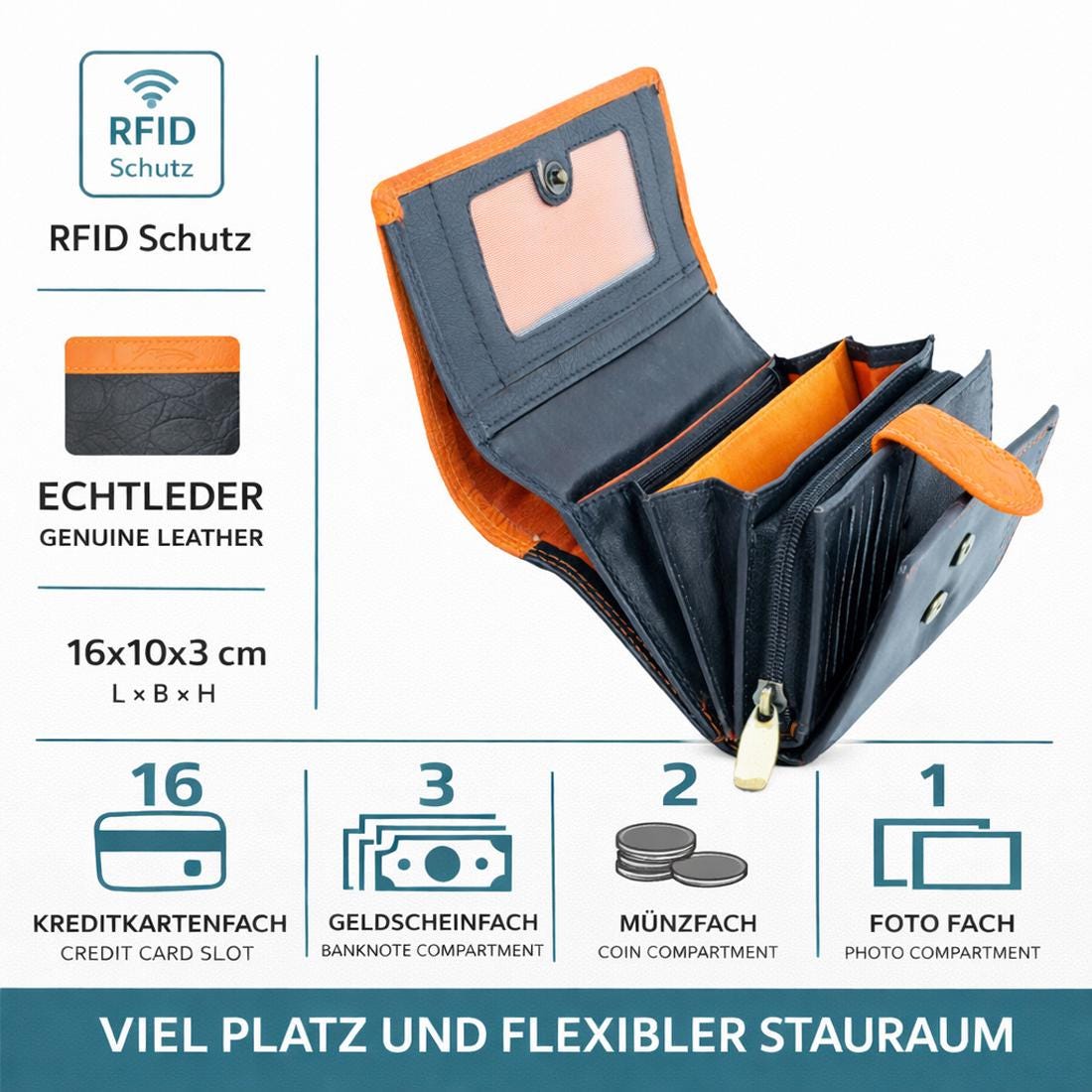 π» A GIFT WITH SUBSTANCE: Timeless women's wallet in black or orange β a great gift idea for women and girls; neat, durable, suitable for everyday use: buy, use, done.