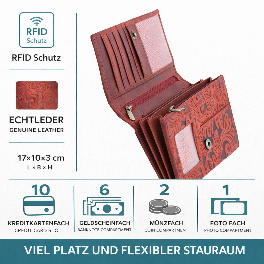 π» COMPACT & WELL-DESIGNED: Women's wallet in red, measuring 17 x 10 x 3 cm, fits in many handbags. 10 card slots, 6 bill compartments, and 2 coin pockets keep everything organized.
