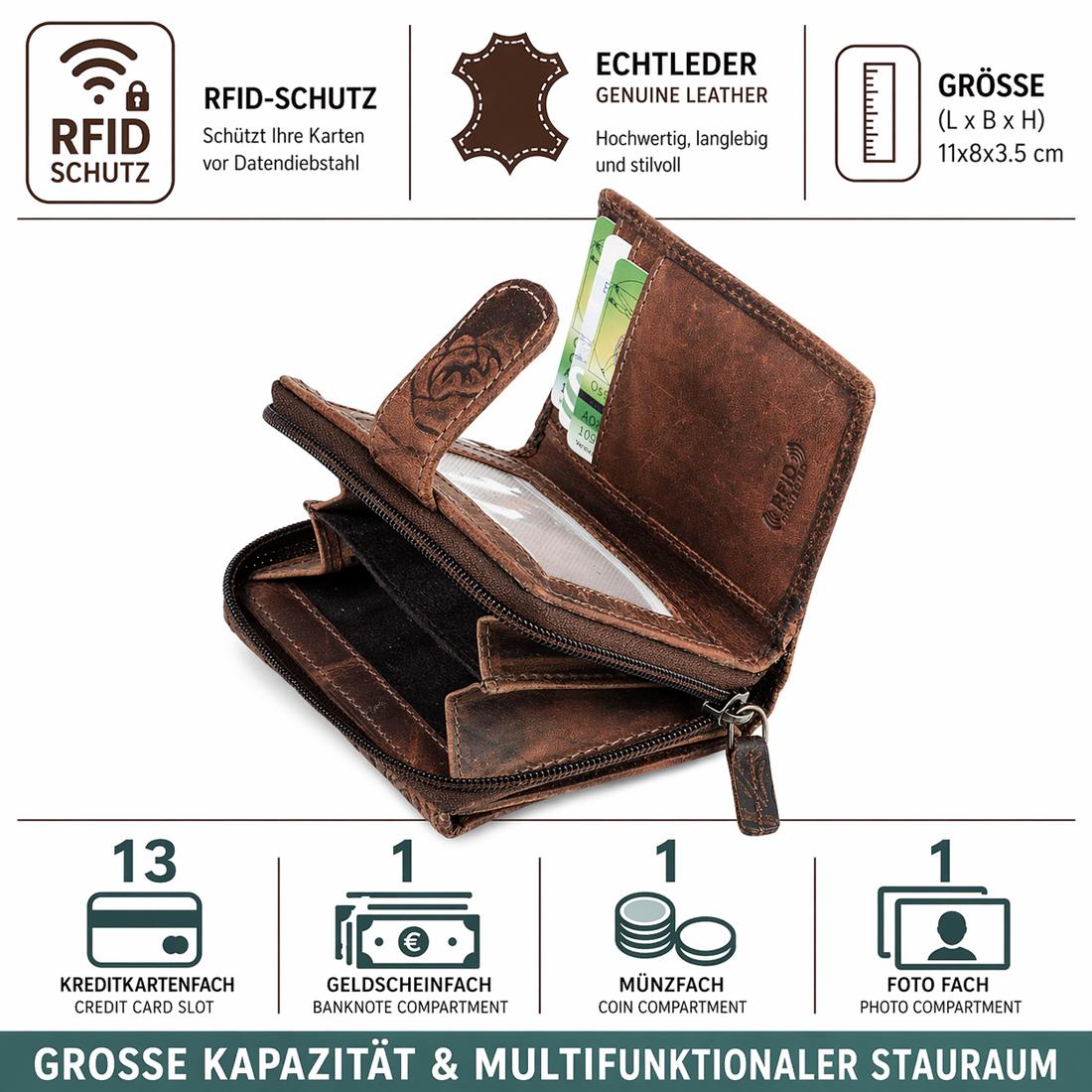 π» COMPACT & WELL-DESIGNED: Women's wallet in brown measuring 11 x 8 x 3.5 cm β handy for the handbag, yet offering ample storage space with a neatly organized interior.