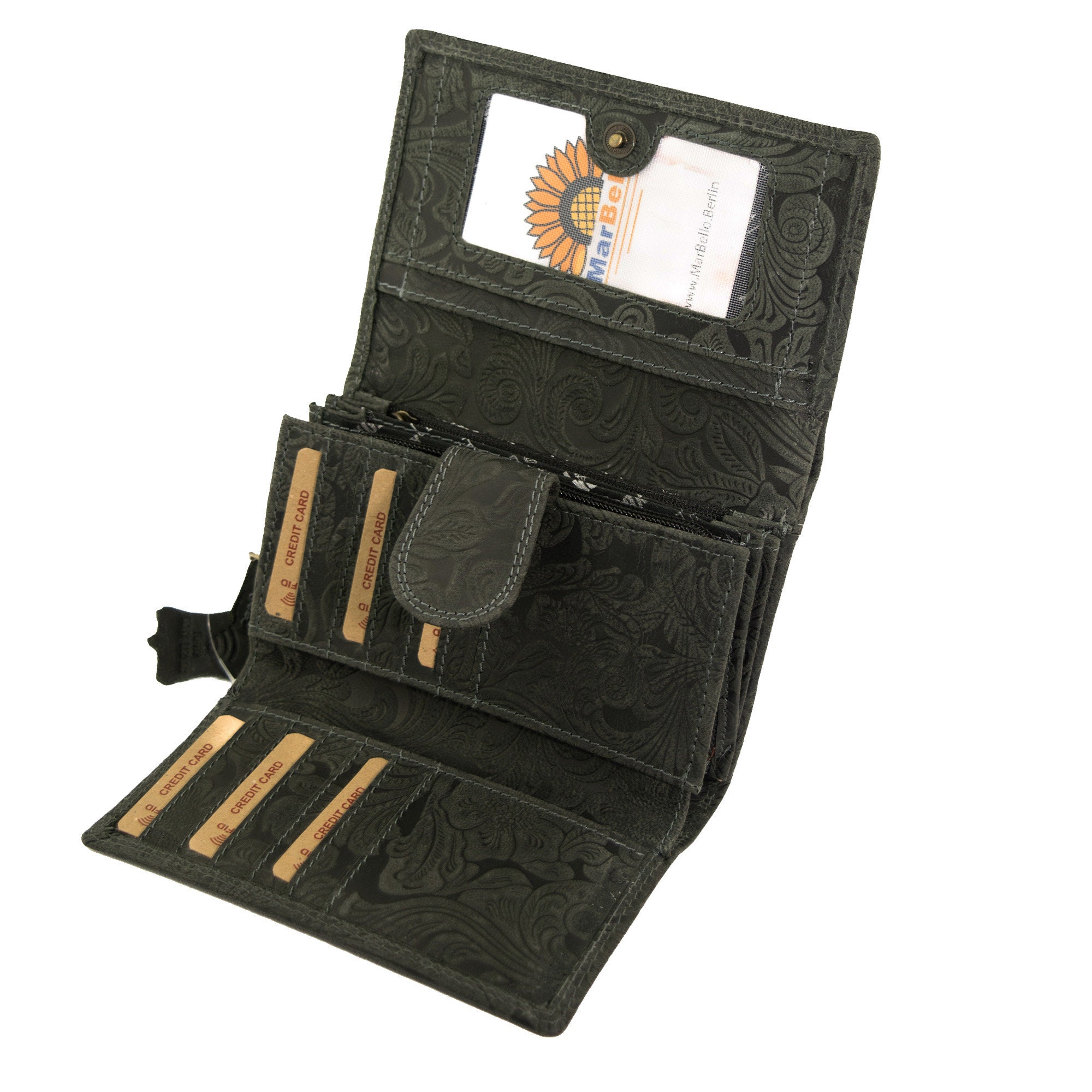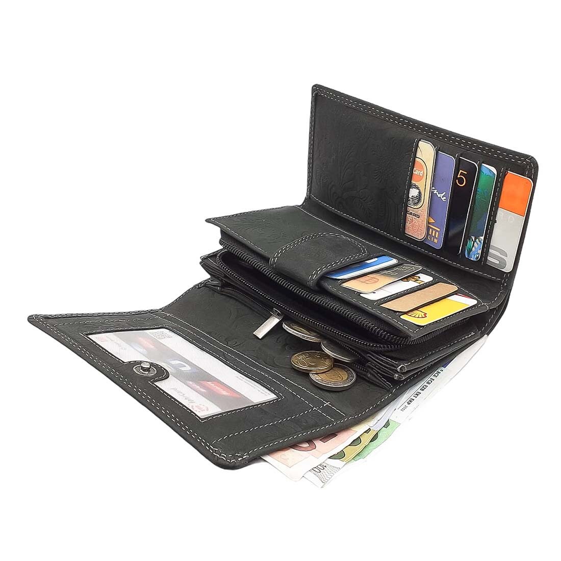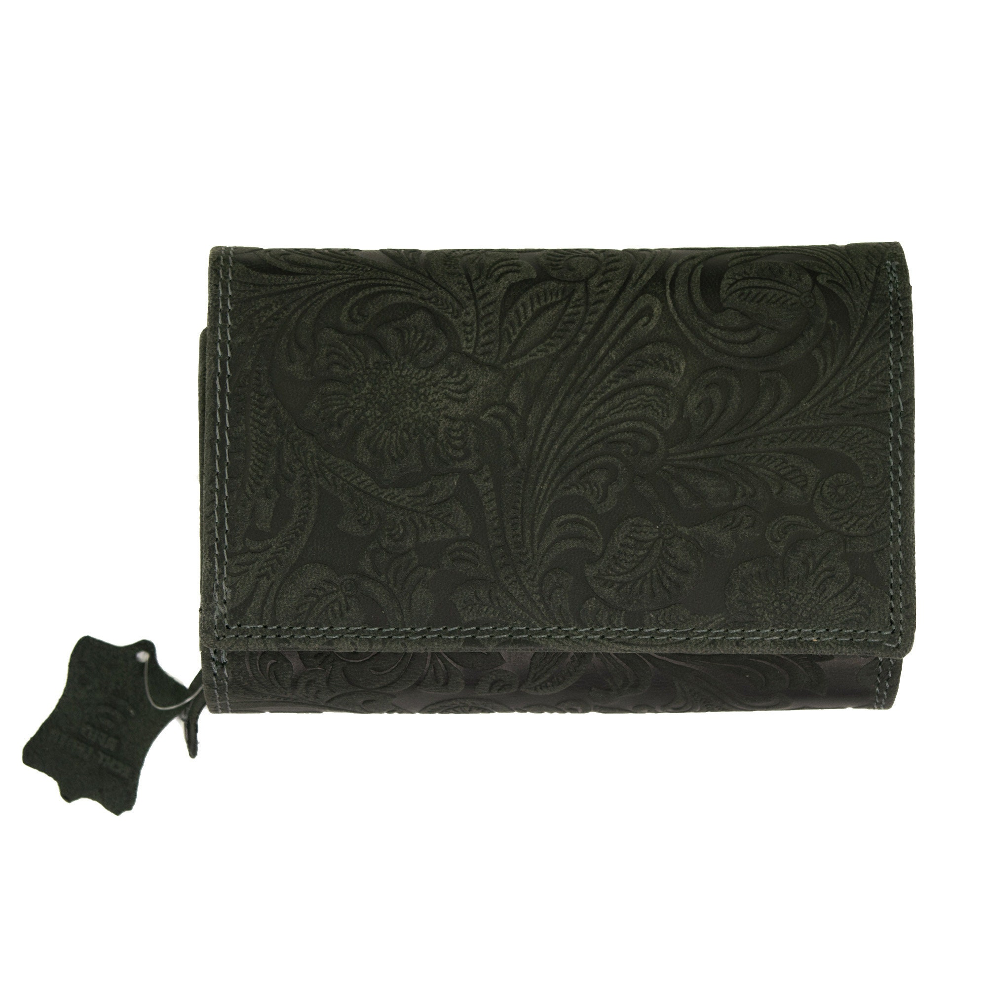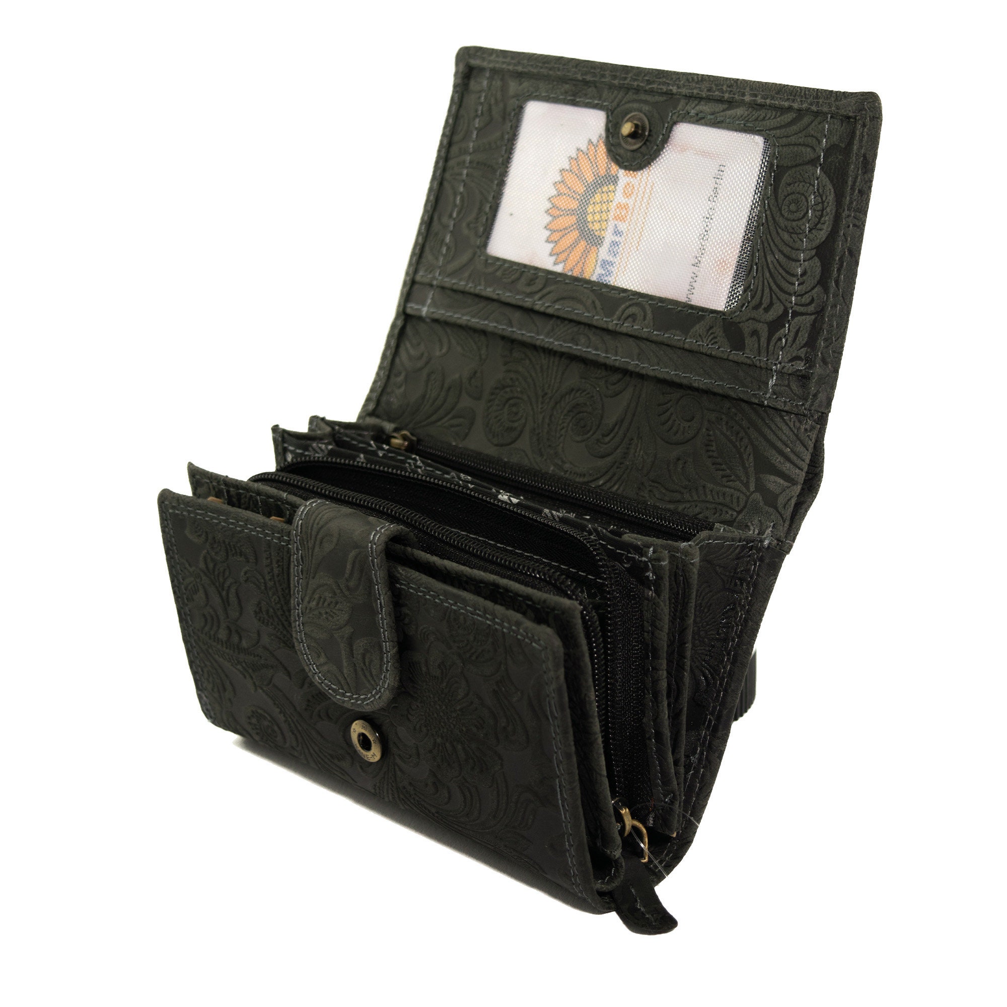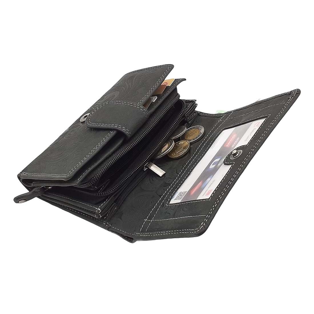 100% genuine buffalo leather, protective exterior embossed with antique style floral print, durable and water-repellent in anthracite color.