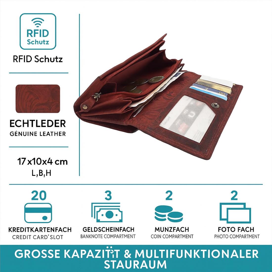 🌻 100% genuine buffalo leather, protective exterior embossed with antique style floral print, durable and water-repellent.